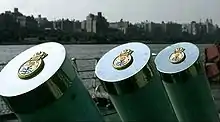 Os tampões adornados do USS Missouri em 2002
