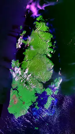![]() As Ilhas Aru em imagem de satélite, ano 2000 | |