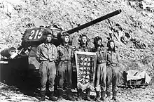 Em outubro de 1950, Mao tomou a decisão de enviar o Exército Popular Voluntário à Coréia contra as forças das Nações Unidas lideradas pelos Estados Unidos na Guerra da Coréia; os exércitos chineses que lutavam lá estavam equipados com armas pesadas de fabricação soviética, incluindo tanques T-34. Durante o início dos anos 1950, a China começou a produzir cópias do tanque soviético T-34 e estabeleceu suas próprias fábricas para construir projetos aprimorados (predominantemente cópias de projetos soviéticos) até os tanques chineses atuais e contemporâneos que carregam suas próprias influências domésticas.