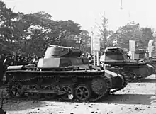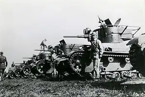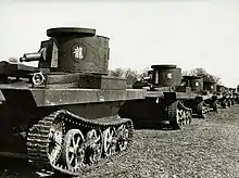 Influenciado pelo desempenho dos tanques japoneses durante a Primeira Batalha de Xangai, o governo nacionalista chinês iniciou a mecanização do exército em 1933, com os 24 tankettes britânicos Carden Loyd Mk VI. Mais tarde, eles compraram 20 tanques Vickers de 6 toneladas entre 1934 e 1936, que foram usados em combate contra os japoneses na Batalha de Xangai em 1937.[15] Eles também compraram 29 tanques anfíbios Vickers, que foram desenvolvidos em 1932, mas que não foram usados no Reino Unido.[15]