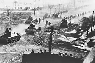 Após a saída dos alemães, em 1938, a União Soviética voltou a apoiar os nacionalistas. O Exército Nacional Revolucionário que enfrentava as forças japonesas tinha apenas um pequeno número de veículos blindados e tropas mecanizadas formadas em três batalhões blindados para defender uma frente grande. Em agosto de 1937, o governo de Chiang Kai-shek negociou com o governo soviético por ajuda militar. Os soviéticos intervieram e começaram a fornecer conselheiros e tanques, chegando à China pela primeira vez em março de 1938.[20] Depois que a força blindada chinesa foi em sua maioria destruída nas batalhas de Xangai e Nanquim, novos tanques, carros blindados e caminhões da União Soviética e da Itália possibilitaram a criação da única divisão mecanizada do exército, a 200ª Divisão organizada e assessorada pelos soviéticos, a qual consistia em um regimento de tanques e um regimento de infantaria motorizada, e equipada com o tanque leve T-26.[21]