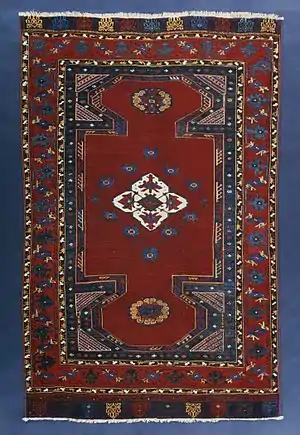 Os tapetes "grandes" poderiam ter sido fabricados em Pérgamo e os de "pequenos compartimentos" em Uşak.[30] O Museu de Artes Aplicadas de Viena, o Museu do Louvre em Paris e o Museu Metropolitano de Arte em Nova Iorque mantêm tapetes Usak.