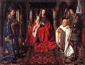 Um padrão de tapete turco retratado por Jan van Eyck na pintura Virgem e o Menino com o Cónego van der Paele foi atribuído por Brüggemann no final das origens romanas e em relação aos primeiros pisos de mosaicos islâmicos encontrados no palácio de Hisham (Khirbat al-Màfjar).[69]