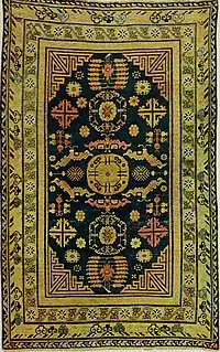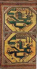 Em seu ensaio sobre desenhos centralizados, Thompson,[65] relaciona o padrão do medalhão central, freqüentemente encontrado em tapetes turcos com os motivos "pedestal de lótus" e "pescoço de nuvem", usados na arte budista da Ásia, no retorno da dinastia Yuan. Recentemente, Brüggemann aprofundou a relação entre motivos chineses e turcos, como o ornamento da "banda da nuvem", cuja origem está relacionada à dinastia Han.[66] O primeiro "tapete Dragão e Fênix" da Anatólia mostra outro tema da mitologia chinesa tradicional, a luta entre a fênix e o dragão.[67]