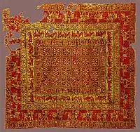 O tapete mais antigo que se encontra preservado é o tapete Pasyryk, datado do século V a.C.. Sua fabricação é desconhecida,[10] mas seu tecido atado fino e seu modelo finamente trabalhado são um espetáculo simétrico de arte na fabricação de tapetes, que alcançaram esse primeiro período com grande maturidade técnica e artística.[11]