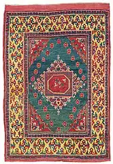 Quando os imigrantes turcos se mudaram da Ásia Central para a Anatólia, estavam emigrando principalmente por terras que já haviam adotado o Islã. A representação de animais ou humanos é proibida na tradição islâmica, que não distingue entre vida religiosa e vida profana. Desde a codificação do Alcorão por Uthman Ibn Affan em 651 AD / 19 AH e as reformas do Umayyad Abd al-Malik, a arte islâmica concentrou-se na escrita e no ornamento. As bordas dos tapetes da Anatólia geralmente contêm decorações derivadas da caligrafia islâmica. Como regra, essas arestas "cúficas" consistem em sequências lam-alif ou alif-lam em um padrão entrelaçado.