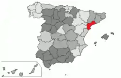 | Fronteiras: | Barcelona (província) (nordeste), Lérida (província) (noroeste), Saragoça (província) e Teruel (província) (oeste), Castellón (província) (sul) e Mar Mediterrâneo (leste). |