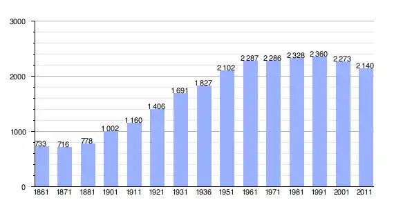 | Variação demográfica do município entre 1861 e 2011[3] |