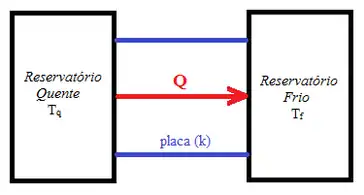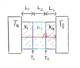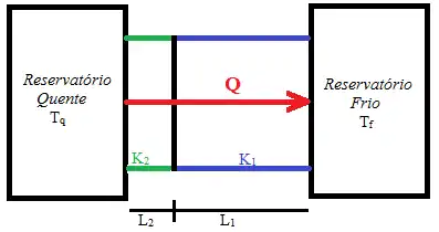 Para uma placa composta de dois materiais de espessuras diferentes e condutividades térmicas diferentes, assumimos que a transferência de calor acontece em um regime estacionário, ou seja, a temperatura da barra é independente do tempo e depende apenas de L; isto, na prática, significa que as taxas de condução através dos materiais são iguais.[2] Chamamos Tx a temperatura entre os dois materiais fazemos a seguinte analogia: