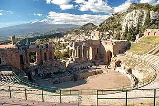 Construído no terceiro século antes de Cristo, o teatro antigo de Taormina (em italiano: Teatro antico di Taormina) é um antigo teatro grego, localizado na cidade de Taormina, na ilha italiana da Sicília.