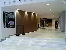 O acesso ao vestíbulo é feito por uma porta que dá para a rua Bertendona, a qual é o elemento principal da grande fachada que está protegida legalmente como património cultural. Na entrada do vestíbulo encontram-se as bilheteiras; ao fundo encontram-se as casas de banho; e nos lados situam-se as escadas de acesso aos andares superiores. Há numerosas saídas de emergência e acessos e informações para deficientes físicos e sensoriais em todos os andares.
