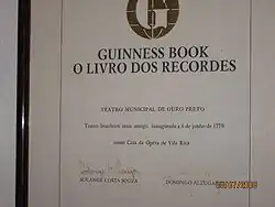 Teatro Municipal de Ouro Preto: Certificado do Guinness Book reconhecendo como o mais antigo teatro do Brasil.