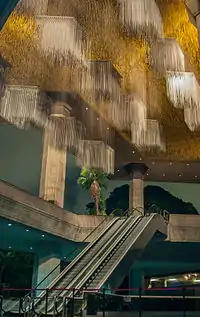 - Nuvens Brancas localizadas vários metros acima dos assentos da Sala Ríos Reyna para funcionar como elemento acústico e ornamental.
