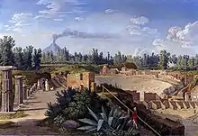 | O Teatro de Pompeia está incluido no sítio "Áreas arqueológicas de Pompeia, Herculano e Torre Annunziata", Património Mundial da UNESCO. |