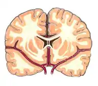 * Substância cinzenta: Área formada também por tecido nervoso. Localizada externamente no encéfalo é onde encontram-se os corpos celulares, dendritos, alguns axônios e alguns tipos de glicócitos.[4][7] A coloração das organelas celulares é responsável pela coloração rosa-acinzentado.