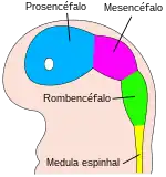 Durante o desenvolvimento embrionário, o Tubo Neural é constituído por uma porção craniana, o arquencéfalo que dá origem ao encéfalo do adulto, e uma porção caudal que origina a medula espinal. No arquencéfalo distinguem-se inicialmente três dilatações, as vesículas encefálicas primordiais, denominadas prosencéfalo, mesencéfalo e rombencéfalo. O prosencéfalo se diferenciará, posteriormente, em duas vesículas: o telencéfalo e o diencéfalo[1].