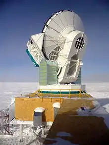 O Telescópio do Polo Sul é um telescópio de 10 metros de diâmetro localizado na estação Amundsen–Scott, na Antártida. O telescópio é projetado para observações de vários tipos de ondas, no espectro eletromagnético, com o objetivo de medir a emissão difusa da radiação cósmica de fundo (CMB).[1] A primeira grande pesquisa com o SPT – projetado para localizar aglomerados de galáxias distantes – foi concluída em outubro de 2011. No início de 2012, uma nova câmara foi instalada no SPT com maior sensibilidade e capacidade de medir a polarização da luz incidente. Esta câmera é projetada para medir o chamado "modo-B" ou componente "rotacional", levando a restrições sobre a massa do neutrino e a escala de energia de inflação.[2]