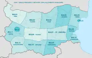 A Bulgarian Telecommunications Company forneceu um transponder DVB-T experimental em Sófia desde 2004. A primeira transmissão digital regular começou em 1 de março de 2013, com um plano para terminar a transmissão analógica em 1 de setembro de 2013. O período Simulcast (tempo entre a transmissão digital e desligamento de transmissão analógica) permitiu que as pessoas tivessem tempo para comprar novas TVs digitais integradas ou set-top boxes. Os padrões escolhidos são o formato de compressão DVB-T e MPEG4 AVC / H.264, enquanto o DVB-T2 não será usado por enquanto. Em 30 de setembro de 2013, a transmissão analógica foi oficialmente encerrada, deixando o país com 96,2% da cobertura de transmissão de DVB-T da população.[1]