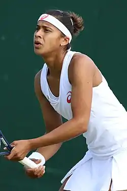Em junho, pelo tradicional Torneio de Wimbledon, ela saiu na frente nos dois sets, mas permitiu a virada e acabou sendo eliminada na estreia do Grand Slam britânico pela italiana Camila Giorgi, então 31ª cabeça de chave, por 2 sets a 0, com parciais de 6/7(4) e 3/6.