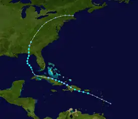 | Áreas afectadas | Pequenas Antilhas, Grandes Antilhas, Parte este do Sudoeste dos Estados Unidos, Este da Região dos Grandes Lagos, Nordeste dos Estados Unidos, Sul de Quebec, Províncias Marítimas do Canadá |