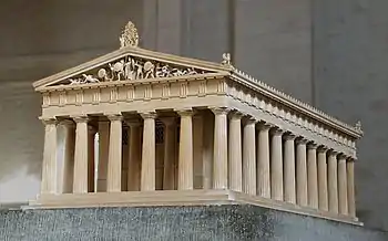 Uma reconstituição do frontão oeste pode ser vista em Perseu.
