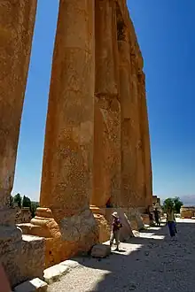 O Templo-Santuário de Zeus Heliopolitano foi arruinado por terremotos,[16] destruído e pilhado pelas pedras sob Teodósio[17] e novamente sob Justiniano: oito colunas foram levadas para Constantinopla (Istambul) para incorporação na Santa Sofia. Três colunas caíram durante o final do século XVIII.[18]
