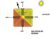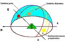 Se durante um ano e desde um ponto fixo se contemplar o amanhecer no horizonte, pode ser observado o sol aparecendo em diferentes posições ao longo do mesmo e a sua trajetória no céu vai mudando. Isto é devido aos próprios movimentos da Terra, de rotação sobre o seu eixo e translação ao redor do sol, bem como a variante da sua eclíptica e a inclinação do eixo terrestre.