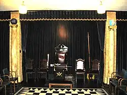 É onde encontra-se a cadeira e o altar do Venerável Mestre ao lado oposto à entrada. A leste, existe uma plataforma levantada, o que pode ser acessada por pelo menos três etapas. Balaustradas de ambos os lados da escada, entre o leste do templo. Existem outros lugares e mais três chapas: a maior, média e voltada para o Ocidente é a do Venerável Mestre, Presidente do Loja. A Sul e Norte, contra o gradeamento, os outros dois platôs são ocupados por outros oficiais, face-a-face. A pedra bruta, pedra cúbica e mais três lustres, perto do Venerável..[3]