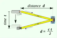 Tempo de voo (em inglês: Time of flight (ToF)) é a medida do tempo que um objeto, partícula ou onda (seja acústica, eletromagnética, etc.) leva para percorrer uma distância através de um meio. Essas informações podem então ser usadas para medir a velocidade ou o comprimento do caminho, ou como uma forma de aprender sobre as propriedades da partícula ou do meio (como composição ou vazão). O objeto em viagem pode ser detectado diretamente (tempo de voo direto, dToF, por exemplo, através de um detector de íons em espectrometria de massa) ou indiretamente (tempo de voo indireto, iToF, por exemplo, pela luz espalhada de um objeto em velocimetria doppler a laser). A tecnologia de tempo de voo encontrou aplicações valiosas no monitoramento e caracterização de materiais e biomateriais, incluindo hidrogéis.[1][2]