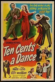 Ten Cents a Dance é um filme estadunidense de 1945, do gênero comédia dramática, dirigido por Will Jason, e estrelado por Jane Frazee, Jimmy Lloyd, Robert Scott e Joan Woodbury. Foi produzido e distribuído pela Columbia Pictures.