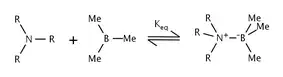 Os efeitos da tensão estérica na reação de trialquilaminas e trimetilboro foram estudados por Brown et al.[5] Descobriu-se que enquanto o tamanho dos grupos alquil na amina era aumentado, o valor da constante de equilíbrio reduziu. Esse deslocamento no equilíbrio foi atribuído à tensão estérica entre os grupos alquila da amina e os grupos metila no boro.