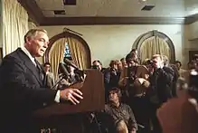 | “ | Eu posso assegurar a nação e ao mundo que o governo americano está funcionando completa e eficientemente.[29] | ” |