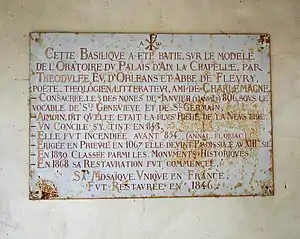 Placa citando Teodulfo (Theodvlfe, Ev.D'Orleáns) em Germigny-des-Prés