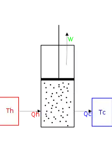 Onde n é a quantidade de partículas do gás usado, R é a constante universal dos gases ideais, Vb e Va são os volumes final e inicial da etapa (1), respectivamente. Analogamente, o calor cedido ao reservatório frio é dado pela expressão: