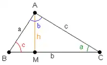 A fórmula é: em que representa o semiperímetro do triângulo e são os comprimentos dos 3 lados do triângulo.