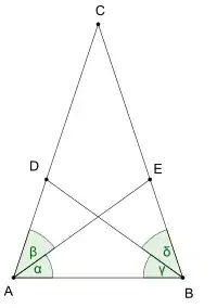 - Qualquer triângulo com dois ângulos bissetores de comprimentos iguais é isósceles.[1]