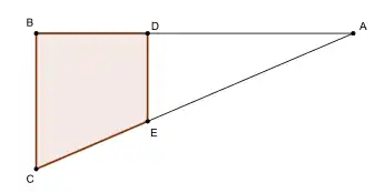- A partir de E trace uma reta paralela ao segmento BC.
