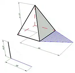 , em que 'P' é o perímetro do triângulo maior e 'p' é o perímetro da área menor[22]
