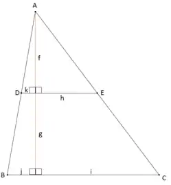 Seguindo o Teorema de Tales, pode-se estabelecer a seguinte relação:[26]