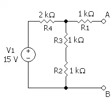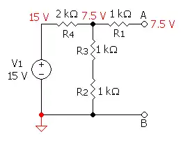 No exemplo a seguir, é possível ver um circuito de corrente contínua sendo transformado pelo teorema de Thévenin no ponto A e B.
