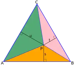 A soma s + u + t é igual à altura desse triângulo equilátero.
