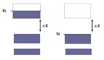 Para um sólido em que o nível de energia mais alto ocupado EF no zero absoluto está localizado dentro de uma banda permitida os elétrons podem então ser acelerados livremente desde que os níveis de energia mais altos sejam acessíveis a esses, esse é um condutor. Em um condutor os elétrons com mais altas energias se comportam aproximadamente como se fossem partículas livres.
