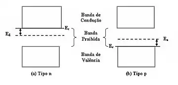 Num semicondutor do tipo N as impurezas introduzem na banda proibida um novo nível de energia Ed próximo ao mais baixo nível de energia desocupado Ec. A esse tipo diz-se uma impureza doadora. Enquanto que num semicondutor do tipo P o novo nível de energia Ed é introduzido próximo ao mais alto nível de energia ocupado na banda de valência Ev. A esse tipo diz-se que é uma impureza aceitadora por todo contorno.