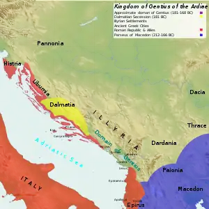 ![]() Mapa do território de Gêncio do Reino da Ilíria | |||