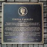 Em 1862, sua família emigrou para Nova Iorque, aos 8 anos de idade, fez sua estrria no Irving Hall. Em 1863, apresentou-se por Abraham Lincoln na Casa Branca. Aos 9 anos debuta como solista com a Orquestra Filarmónica de Boston. Em 1866, mudou-se para a Europa, e começou a excursionar, fazendo sua estreia como cantora de ópera em 1876. Deu seu nome ao Teatro Teresa Carreño em Caracas, inaugurado em abril de 1983 [1].