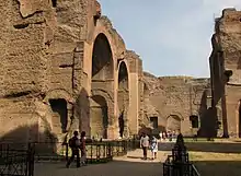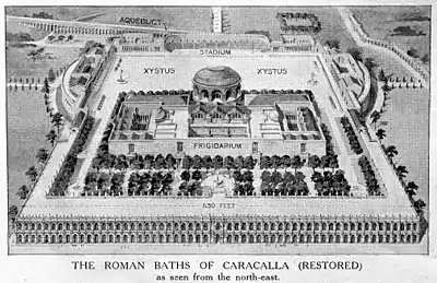 As Termas de Caracala ainda estavam em funcionamento no século V, quando foram consideradas uma das sete maravilhas de Roma. Olimpiodoro de Tebas menciona que ele tinha capacidade para receber 1 600 pessoas, um número que provavelmente era uma referência ao número máximo de visitantes simultâneos, pois acredita-se que a capacidade diária era de 6 000 a 8 000 pessoas[2]:8.