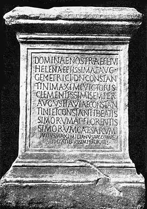 Uma outra grande inscrição (hoje nos Museus Vaticanos) recorda a restauração por Helena depois de um incêndio[1]. Depois do final do século XVI, os restos das termas foram demolidos por Domenico Fontana por ordem do papa Sisto V para permitir a abertura de um trecho da Via Sistina (strada Felice) na frente da basílica de Santa Croce in Gerusalemme (moderna Via di Santa Croce in Gerusalemme).