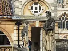 - Este artigo foi inicialmente traduzido, total ou parcialmente, do artigo da Wikipédia em inglês cujo título é «Roman Baths (Bath)», especificamente desta versão.