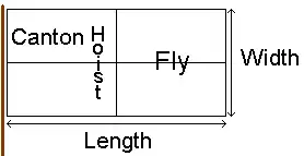 A extensão de uma bandeira ao longo do lado perpendicular ao mastro.