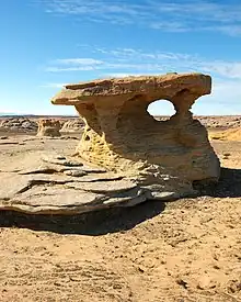 Efeitos da erosão eólica no arenito da Terra de Jameson.